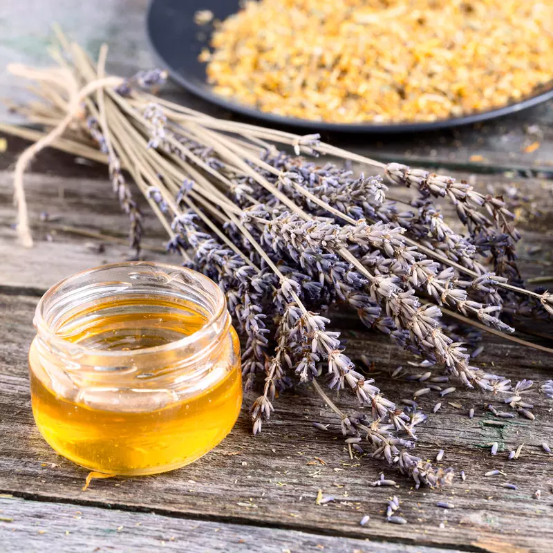 Our organic heather honey is known for its rich flavor, dark amber color, and naturally thick texture. It is harvested from heather fields and gently handled to preserve its